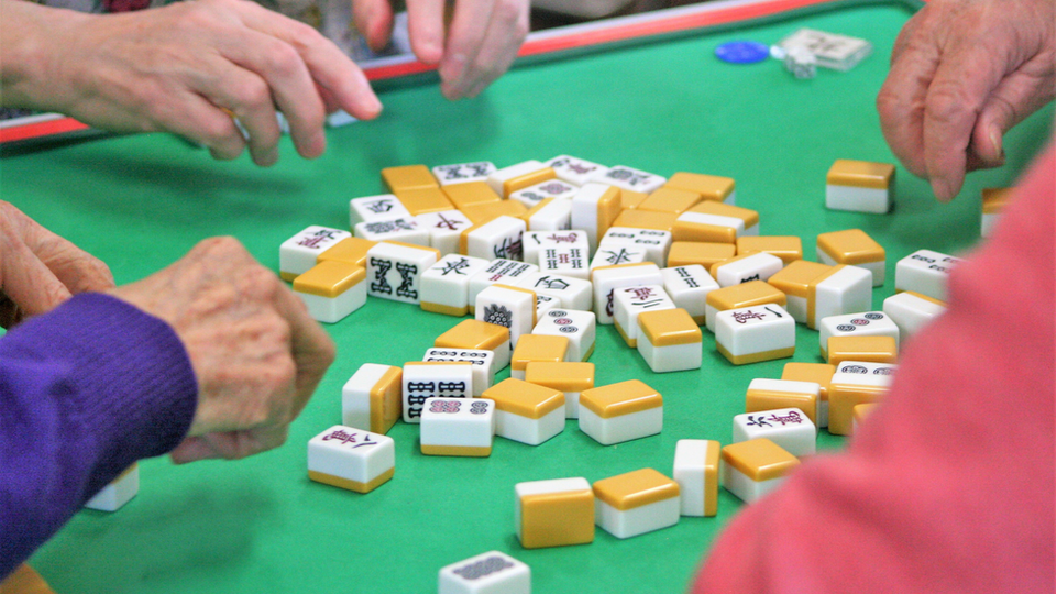 健康麻雀とは、「酒を飲まない」「タバコを吸わない」「賭けない」麻雀です。 指先で牌を動かし、考え、会話しながら行う麻雀は、認知症予防に効果的です。